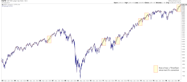 First, the current uninterrupted rally is rare and extended from a historical perspective, but these periods can last much longer.