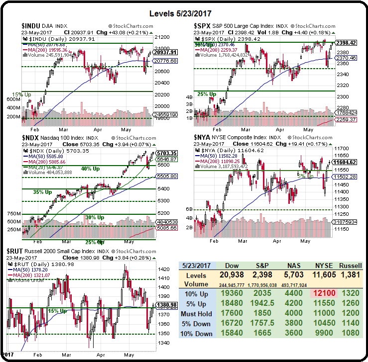 2,399.50 was the top for the S&P Futures (/ES) yesterday at noon so it's game on for our shorts as well as Russell (/TF) 1,380 and both are still hanging around those levels this morning.  As I said yesterday (and the 4 Tuesdays before that), we'll keep shorting at the top until it stops working.  Seems like a sensible plan, right?