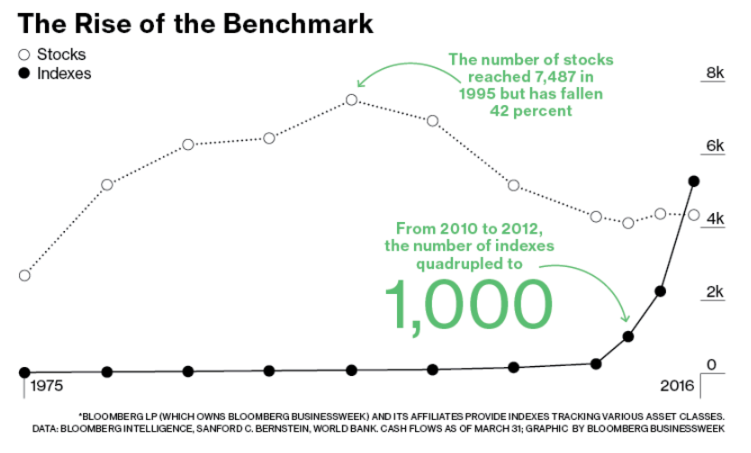 Bloomberg recently reported that the number of indexes has exploded and now exceeds the number of stocks in the US. Enlarge any chart by clicking on it.