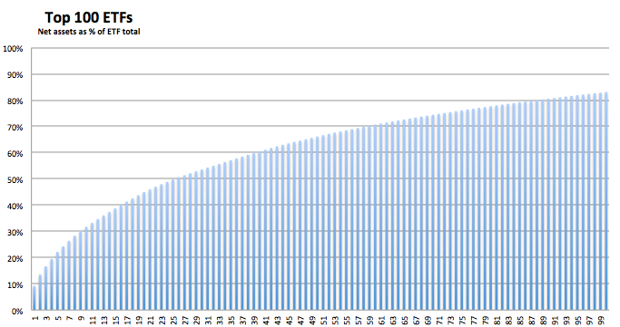 The top 100 ETFs (4% of the total) account for 84% of total ETF assets.