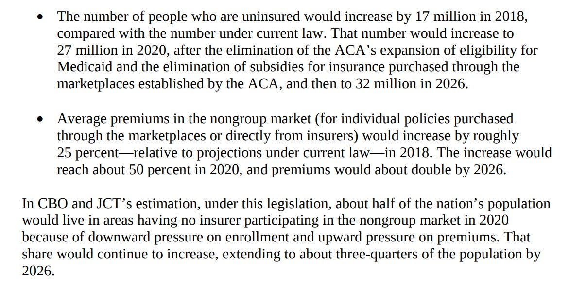 • 17M people will IMMEDIATELY lose their health care, rising to 32M as time goes on.