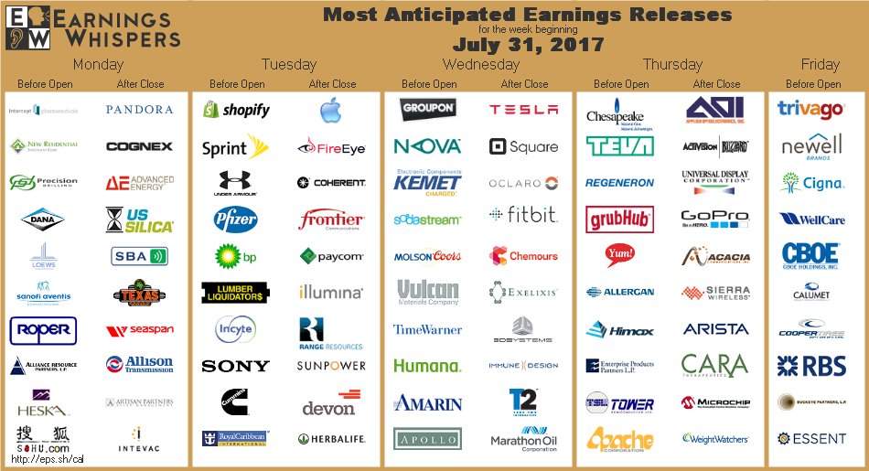 Apple (AAPL) has earnings this evening and I don't see how they'll justify $150 since most people are probably waiting for the new iPhone at the moment.  Expectations may have gotten a bit ahead of themselves and Apple, unlike Tesla, isn't into self-promotion and tends to give conservative guidance estimates as well.  Apple, of course, is a huge mover of the Nasdaq, S&P and the Dow so big fireworks there if they disappoint.