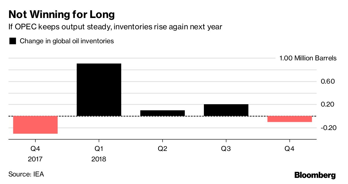 Are we consolidating for a move up or a move down?  As you can see from this chart, if all OPEC does on Friday is keep the cuts they have now, we're heading back towards 3 quarters of inventory builds in 2018.  It's only 12 (2030) years until China, France, Germany, India, Netherlands, Norway, and the UK plan to eliminate fuel-burning cars entirely – and that represents half the World's population (and Africans don't have many cars) with more countries joining the list each month at this point.
