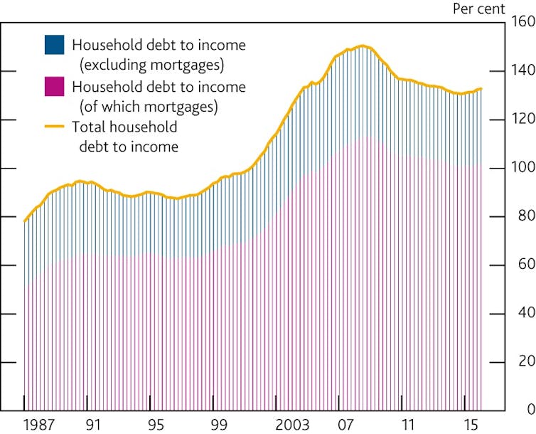 But, despite hints of a rise from Carney, the situation is not that simple. The long period of low interest rates has been accompanied by a worrying surge in consumer borrowing. Household debt exceeds 100% of household income and house prices are on an upward trajectory, climbing back to 2007 crisis levels.