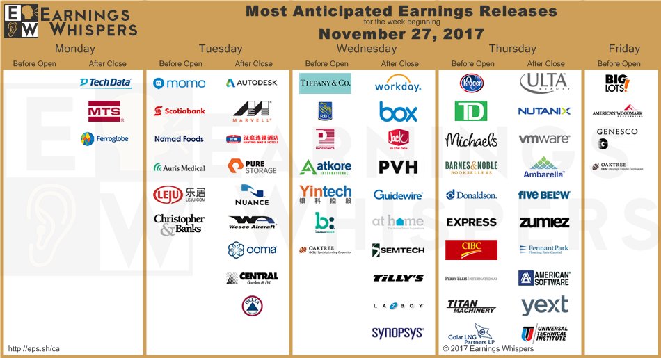 There's going to be 11 Fed speeches and the Beige Book along with GDP on Wednesday so plenty of market-moving info that won't move the market as long as people think the Tax Cuts are going through, making it silly to take profits in 2017 when they'll be taxed at higher rates.  As long as the Top 1% are willing to hold onto their equities – the market will continue to drift along at the highs into the year's end but look out in January – as it will be every man for himself to start the year off with a bang.