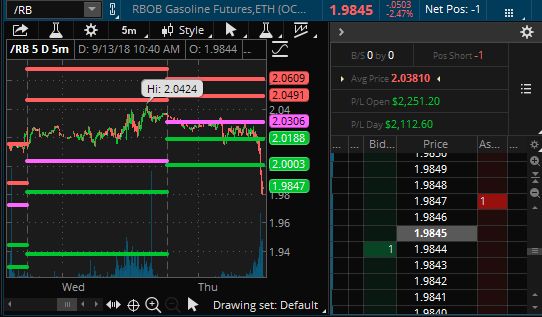 In Wednesday's Live Trading Webinar we were shorting Gasoline (/RB) Futures at $2.04 and we let one contract ride overnight and that one contract made a nice $2,112 yesterday afternoon so – you're welcome!  It's too risky to keep playing over the weekend so we'll just hope "THEY" spike it back up over the weekend so we can short it again next week.