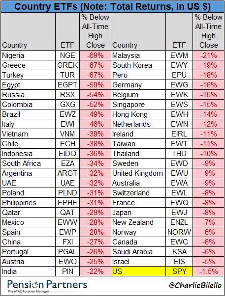 As noted by StJeanLuc in this morning's Live Member Chat Room, the rest of the World is correcting and it's the US in general that's lagging. A lot of this is because half our population (and most of the investing population) is brainwashed into believing in "American Exceptionalism", which is the same nonsense they believed in 2008, when the rest of the World was going to Hell and traders here thought we'd be immune.
