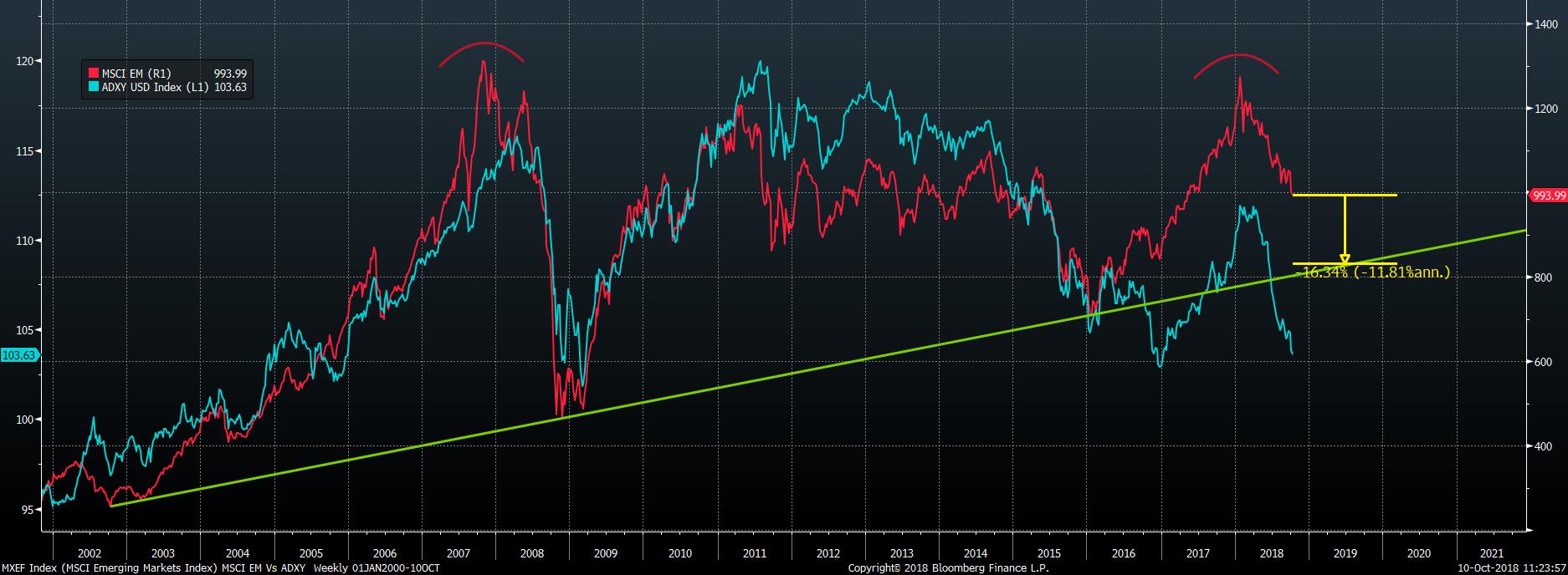 Indonesia is a $1Tn economy that's in BIG trouble and that's what's going on at the moment on the other side of the World while we worry about who Taylor Swift is voting for. Hope springs eternal among the Finance Ministers and, just this morning, there were rumors of sudden progress on US/China Trade Talks but, since there were no significant meetings scheduled – it's doubtful they were true. Indeed, if this week's meetings don't show progress – Emeriging Markets (red line) have a lot further to fall than they already have: