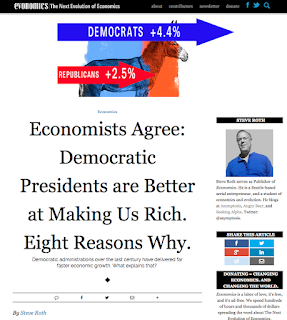 The Evonomics site — where Adam Smith would post, today — offers this: Economists Agree: Democratic Presidents are Better at Making Us Rich. Eight Reasons Why.