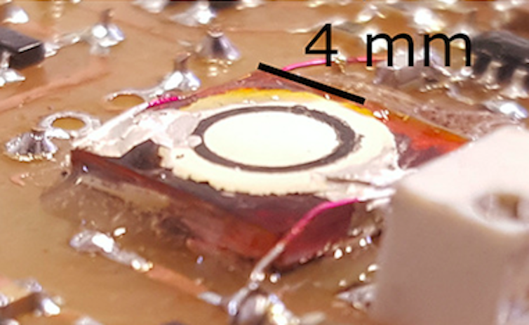By swapping between circuits, sensors and actuators in a single print, you can create an entire working 3D component. People have been using this technique for the past few years to print things like optical components for, say, lenses or panels; and accelerometers – devices that measure the movement of everything from human running speeds to earthquakes. Likewise it enabled us to build our microphone, taking it from digital file to reality in just six hours.