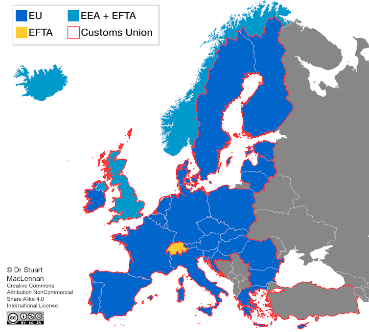 Under the plan, the UK would rejoin the European Free Trade Association (EFTA) of which it was a founding member prior to joining the European Economic Community. The UK would also accede to the European Economic Area (EEA) agreement with the EU. This is a two-pillared agreement between the EU, as well as three of the four EFTA members: Iceland, Liechtenstein and Norway, but not Switzerland. This is often known as the “Norway model”.