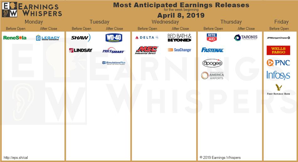 This is the first week of earnings season and it really kicks off on Friday with some Big Bank earnngs but we are long Bed Bath and Beyond (BBBY) so we'll be watching them closely and last week we made Walgreen's (WBA) a big long on their dip, which means we'll be very curious about Right Aid's (RAD) earnings on Thursday morning as well.