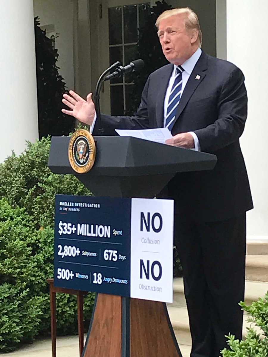 It's interesting that Trump is complaining about the Mueller Investigation costing $35M (his estimate, not a fact) when Trump has spent $102M of the taxpayers' money playing golf in the past two years – and that is a FACT. In fact, Mueller has already collected $47M in fines so there's a $12M+ PROFIT from the investigation, not to mention that there have already been 37 people indicted for criminal activity including 26 Russians who interferred with our Democracy and, so far, 7 people have already pled guilty, including several who were serving directly under the President.