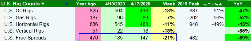 We're already seeing half the oil rigs going off-line as they can't afford to operate anyway and 69% of the Fracking Rigs are off-line too – as they are the most expensive way to extract a barrel of oil which cost you $38.50 to pay someone to take it away on Monday – that's not a recipe for a successful business model, is it?