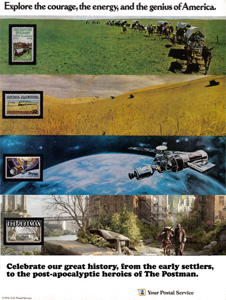 - Ask for The Postman movie to be promoted on your favorite streaming service… perhaps along with a ‘Go vote!” speech by Costner? Or write asking for The Postman book to be promoted on Amazon!