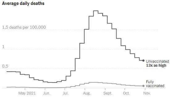I know you are reading in the Corporate Media that Omicron is milder but it's infecting more people and still, in America, a supposedly advanced country, only 62% of the population is fully vaccinated with 27% still having not had a single shot and, as it turns out, unvaccinated people are 13 TIMES more likely to die of Covid than vaccinated people and 5 times more likely to become infected with Omicron and, the way it is spreading, that means it's pretty much a certainty that 100M people will be catching Omicron and over 500,000 of them will die – happy holidays – I hope that time at the mall was well-spent!