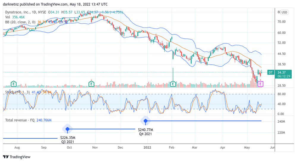 As can be seen on the daily charts, Dynatrace’s share price is clearly headed for the downside despite consistently growing revenues. It has had a great couple of quarters, but the stock is not responding to the good news released in the earnings reports. Some analysts have posited that the reason for the stock’s slide is due to not meeting some metrics such as ARR or the fact that its leadership team is changing. My view is that the market has severely changed its risk appetite for technology stocks in general and that it is being punished for it.