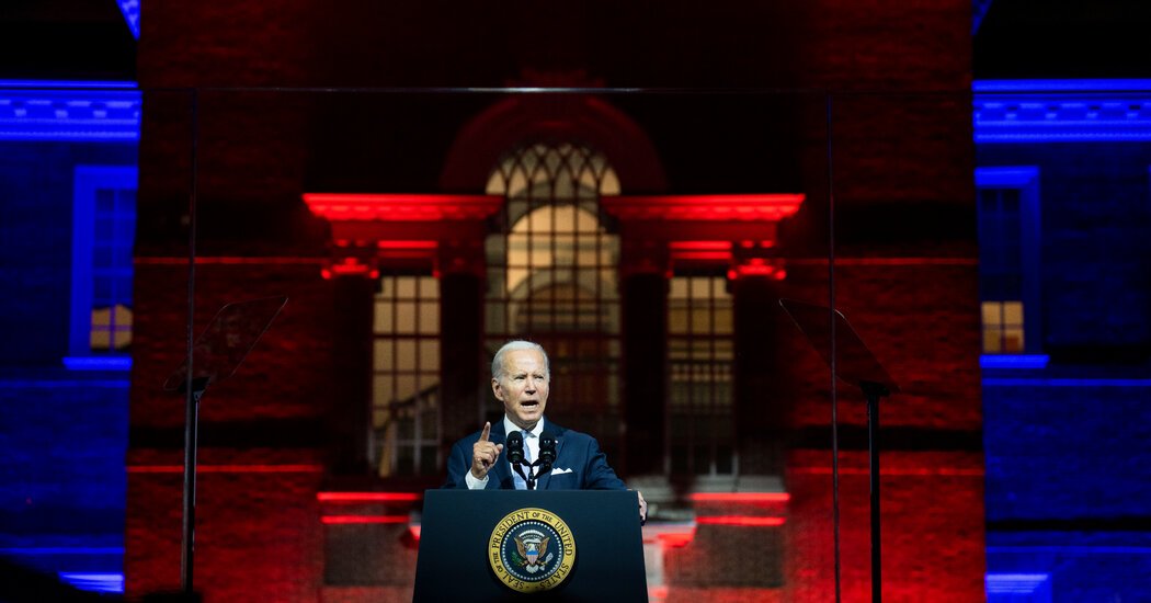 Just before the traditional Labor Day launch of the political season, President Biden inserted himself into the midterm elections on Thursday with a fierce speech castigating former President Donald J. Trump and his followers but ending with optimism for the nation’s democratic future. Here are four …