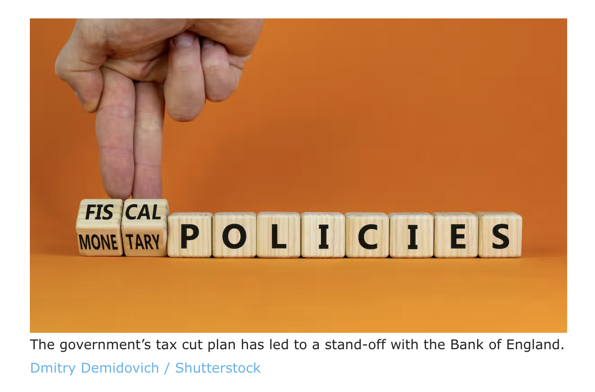 This latest intervention underlines how intertwined monetary policy – the tools used by a central bank to support a country’s economic growth – is with fiscal policy – the tools used by the government to achieve the same ends. What the government does affects what the Bank has to do and vice versa. It also indicates that either the government or the central bank must consider changing their stated course to address the current economic crisis, or risk continued financial market volatility.
