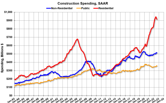 HomeMarkets Markets Construction Spending Decreased 0.7% in August By news October 3, 2022 0 191 FacebookTwitterPinterestWhatsApp From the Census Bureau reported that overall construction spending increased: Construction spending during August 2022 was estimated at a seasonally …This post was originally published on this site Share FacebookTwitterPinterestWhatsApp Subscribe Login Notify of new follow-up comments new replies to my comments Please login to comment 0 Comments Inline Feedbacks View all comments Stay Connected149,545FansLike396,312FollowersFollow2,650SubscribersSubscribe Latest Articles Markets Tariffs might seem manageable now – but they’ll quietly squeeze households later Markets Will a ‘Trump slump’ continue to hit US tourism in 2026 − and even keep World Cup fans away? Markets Trump Is a Global ‘Wrecking Ball,’ European Security Experts Say Markets Monday Morning Report: Dow 50K, The Super Bowl Hangover, and The China Syndrome Markets PhilStockWorld’s Weekly Wrap-Up – 🏦 The Matrix Economy: Capital Hegemony and the Infrastructure War Markets ConocoPhillips CEO sends strong message on Venezuela oil future Markets Trump cut science funding. Small businesses are paying the price. Markets Beware of the biggest threat to US national Security: Trump Markets U.K. leader’s chief of staff quits over hiring of Epstein friend as U.S. ambassador Markets America lost $35 billion in clean energy projects last year — thanks to Trump Markets Zelenskyy says the U.S. is gearing up to do business with Russia as strikes continue Markets Ernst & Young drops blunt reality check on the economy Markets They Aren’t Acting Like They Might Lose Charts PSW’s Weekly Webinar: $700/Month Portfolio Review & Q4 Earnings Update (2-4-26) Load more