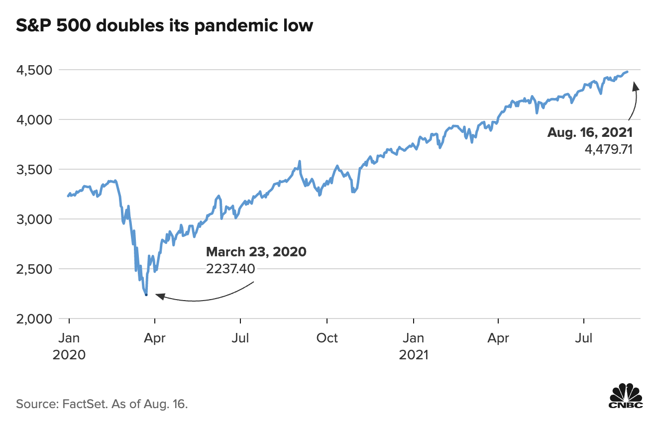 Between March 23rd, 2020 (the day stocks bottomed) and August 16th, 2021, the S&P 500 had doubled from 2237 to 4479. It took just 354 days, the fastest double in stock market history back to World War II. In the one year period from March 2020 through March of 2021, 0ver 95% of all S&P 500 component stocks had a positive return. In calendar 2021, over 1,000 companies came public, wiping out every initial public offering record on the books.