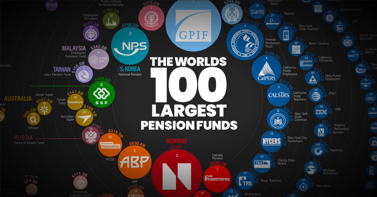 HomeMarkets Markets Ranked: The World’s 100 Biggest Pension Funds By news November 25, 2022 0 159 FacebookTwitterPinterestWhatsApp View the high-resolution of the infographic by clicking here. Despite economic uncertainty, pension funds saw relatively strong growth in 2021. The …This post was originally published on this site Share FacebookTwitterPinterestWhatsApp Subscribe Login Notify of new follow-up comments new replies to my comments Please login to comment 0 Comments Inline Feedbacks View all comments Stay Connected149,525FansLike396,312FollowersFollow2,650SubscribersSubscribe Latest Articles Markets The Global World Order Is Collapsing- And It’s Much Bigger Than Trump! Markets David Ellison Is Playing a Dangerous Game Markets Interesting Market Activity Noted Markets Trump’s EPA decides climate change doesn’t endanger public health – the evidence says otherwise Markets CPI Friday – Fear Drives the Market – Should We Buy This Dip? Climate Trump just killed the EPA’s ability to fight climate change. It may backfire. AI Swarms of AI bots can sway people’s beliefs – threatening democracy Biotech FDA rejects Moderna’s mRNA flu vaccine application – for reasons with no basis in the law AI Paul Krugman: No, AI Doesn’t Justify Lower Interest Rates Markets Fact Check Thursday – What is Really Going on in the Economy? AI What dating apps are really optimizing. Hint: it isn’t love Biotech Why is US health care still the most expensive in the world after decades of cost-cutting initiatives? Market News Federal Debt to Hit Record Levels, Budget Office Warns Biotech The FDA Refuses To Review Moderna’s Flu Vaccine Load more