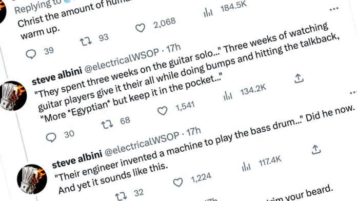 HomeMarkets Markets Steve Albini hates Steely Dan: “Christ, the amount of human effort wasted to sound like an SNL band warm up” By news February 7, 2023 0 190 FacebookTwitterPinterestWhatsApp In case anyone was in doubt, a triggered Steve Albini has made his feelings on Steely Dan clear. He’s not a fan, it turns out. DON’T MISS In a hugely …This post was originally published on this site Share FacebookTwitterPinterestWhatsApp Subscribe Login Notify of new follow-up comments new replies to my comments Please login to comment 0 Comments Inline Feedbacks View all comments Stay Connected149,454FansLike396,312FollowersFollow2,650SubscribersSubscribe Latest Articles Markets 🌋 Weakovering Wednesday: Markets in Crisis: The Hormuz Conflict and Global Volatility Energy What is the Strait of Hormuz, and why does its closure matter so much to the global economy? Hot Items A Plan B for space? On the risks of concentrating national space power in private hands Energy Iran’s targeting of airport, ports and hotels in reaction to US strikes has forced Gulf nations onto front lines of a war – Hot Items Donald Trump has made some bold claims on the US economy. But how do they stack up against the data? Energy ‘Destruction is not the same as political success’: US bombing of Iran shows little evidence of endgame strategy Markets Toppling Tuesday – Regimes and Markets Edition Biotech RFK Jr. Lied His Way Into Office and American Health Is the Victim Markets Putin Is the Iran War’s One Sure Winner Markets Trump Makes Surreal Turn From Talking War to Mocking Melania AI The SaaSpocalypse Has Arrived…Or Has It? Markets Trump’s lethal presidency Markets Monday Market Mayhem – World War Trump and Portfolio Hedges Market News Deeply conflicted, Kushner represents the U.S. in high-stakes negotiations with Iran Load more