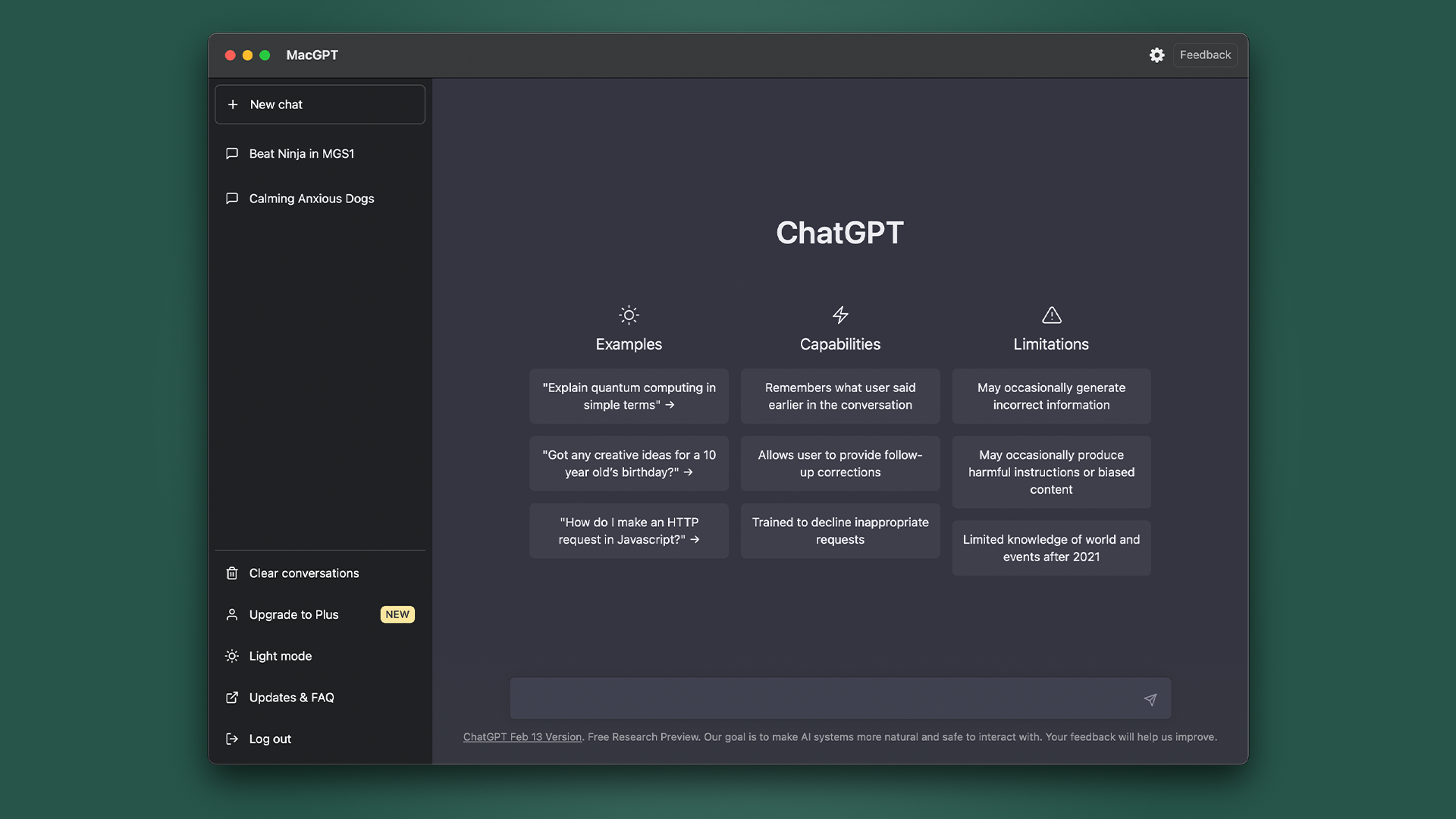 HomeMarkets Markets Windows 11 adds ChatGPT to its Taskbar in new update, but a Mac app already does this By news March 1, 2023 0 195 FacebookTwitterPinterestWhatsApp As Windows 11 ‘Moment 3’ arrives with Bing AI in its Taskbar, a Mac app has offered the same features since December.This post was originally published on this site Share FacebookTwitterPinterestWhatsApp Subscribe Login Notify of new follow-up comments new replies to my comments Please login to comment 0 Comments Inline Feedbacks View all comments Stay Connected149,287FansLike396,312FollowersFollow2,670SubscribersSubscribe Latest Articles Market News Trump’s ceasefire deal with Iran Market News Trump Made a Deal That Gives Him Nothing He Wanted Markets Wednesday Retracement – Trump and Iran Call “Time Out” on World War III Energy U.S. and Iran Reach Two-Week Ceasefire with “Coordinated” Hormuz Reopening (updated) Market News Trump’s Fundamental Misunderstanding in Iran Markets Shameful — ‘I Love Viktor’: Trump and Vance Cheer on Orban in Hungarian Race Energy Trump Looks Frantic Markets Sneak Attack Tuesday – Trump Bombs Kharg Island (again) – Oil Hits $115 (again) Market News Trump Is Putting America’s Weaknesses on Display Energy Hormuz closure threatens the global food supply – why grocery price hikes are coming Markets Trump’s Justice Department Dropped 23,000 Criminal Investigations in Shift to Immigration Markets Monday Market Mayhem – Trump Praises Allah, Extends Deadline (again) and Promises War Crimes Markets Iran’s Revolutionary Guard would fiercely resist a US ground invasion. History proves it Market News Trump Warns Iran on Easter: ‘Open the F-ckin’ Strait, You Crazy Bastards’ Load more