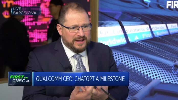 HomeMarkets Markets ChatGPT a ‘milestone’ for Qualcomm as it showcases A.I. smartphone capability, CEO says By news March 2, 2023 0 126 FacebookTwitterPinterestWhatsApp Qualcomm CEO Cristiano Amon on the ability to bring A.I. language models to smartphones and the next frontier of “mixed reality.”This post was originally published on this site Share FacebookTwitterPinterestWhatsApp Subscribe Login Notify of new follow-up comments new replies to my comments Please login to comment 0 Comments Inline Feedbacks View all comments Stay Connected149,283FansLike396,312FollowersFollow2,670SubscribersSubscribe Latest Articles Markets Peter Zeihan: What This Ceasefire Actually Means Markets How to Become a Millionaire by Investing $700 per Month – Part 44/360 Market News Trump’s ceasefire deal with Iran Market News Trump Made a Deal That Gives Him Nothing He Wanted Markets Wednesday Retracement – Trump and Iran Call “Time Out” on World War III Energy U.S. and Iran Reach Two-Week Ceasefire with “Coordinated” Hormuz Reopening (updated) Market News Trump’s Fundamental Misunderstanding in Iran Energy Iran-Linked Hackers Are Sabotaging US Energy and Water Infrastructure Markets Shameful — ‘I Love Viktor’: Trump and Vance Cheer on Orban in Hungarian Race Energy Trump Looks Frantic Markets Sneak Attack Tuesday – Trump Bombs Kharg Island (again) – Oil Hits $115 (again) Market News Trump Is Putting America’s Weaknesses on Display Energy Hormuz closure threatens the global food supply – why grocery price hikes are coming Markets Trump’s Justice Department Dropped 23,000 Criminal Investigations in Shift to Immigration Load more