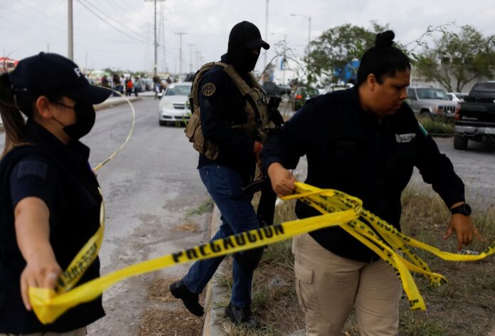 Security personnel work outside the morgue in Matamoros, Mexico, on Thursday before the bodies of two Americans are returned to the United States.MEXICO CITY — Police in the Mexican border city of Matamoros early Thursday discovered five men, bound with zip ties, in a truck near the intersection …