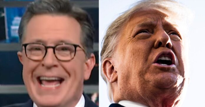 The “Late Show” host also offered a potential bright side for the indicted former president. Stephen Colbert got to deliver some breaking news to his studio audience on Thursday afternoon. “Literally three minutes before I walked out on this stage here, the New York Times reported a New York grand …