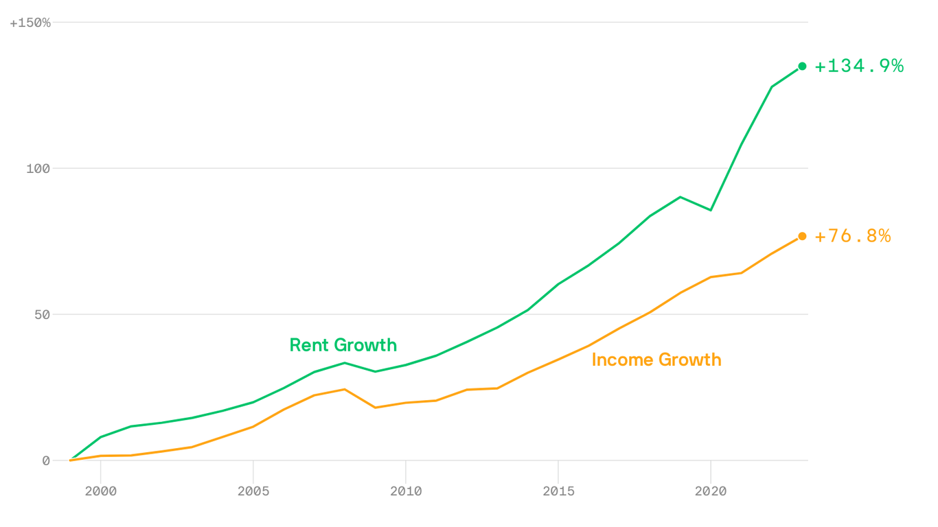 HomeMarkets Markets America’s growing rent burden By news May 22, 2023 0 197 FacebookTwitterPinterestWhatsApp Rent is growing faster than incomes around the country, putting additional pressure on inflation-burdened households. State of play: The median renter …This post was originally published on this site Share FacebookTwitterPinterestWhatsApp Subscribe Login Notify of new follow-up comments new replies to my comments Please login to comment 0 Comments Inline Feedbacks View all comments Stay Connected149,545FansLike396,312FollowersFollow2,650SubscribersSubscribe Latest Articles Markets Tariffs might seem manageable now – but they’ll quietly squeeze households later Markets Will a ‘Trump slump’ continue to hit US tourism in 2026 − and even keep World Cup fans away? Markets Trump Is a Global ‘Wrecking Ball,’ European Security Experts Say Markets Monday Morning Report: Dow 50K, The Super Bowl Hangover, and The China Syndrome Markets PhilStockWorld’s Weekly Wrap-Up – 🏦 The Matrix Economy: Capital Hegemony and the Infrastructure War Markets ConocoPhillips CEO sends strong message on Venezuela oil future Markets Trump cut science funding. Small businesses are paying the price. Markets Beware of the biggest threat to US national Security: Trump Markets U.K. leader’s chief of staff quits over hiring of Epstein friend as U.S. ambassador Markets America lost $35 billion in clean energy projects last year — thanks to Trump Markets Zelenskyy says the U.S. is gearing up to do business with Russia as strikes continue Markets Ernst & Young drops blunt reality check on the economy Markets They Aren’t Acting Like They Might Lose Charts PSW’s Weekly Webinar: $700/Month Portfolio Review & Q4 Earnings Update (2-4-26) Load more