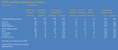 That said, positioning in gasoil and US diesel ticked slightly higher in the latest week, while commercial traders who work for the producers as well as other merchants of crude, aren’t so bearish, with some even reducing hedges against a potential price drop.