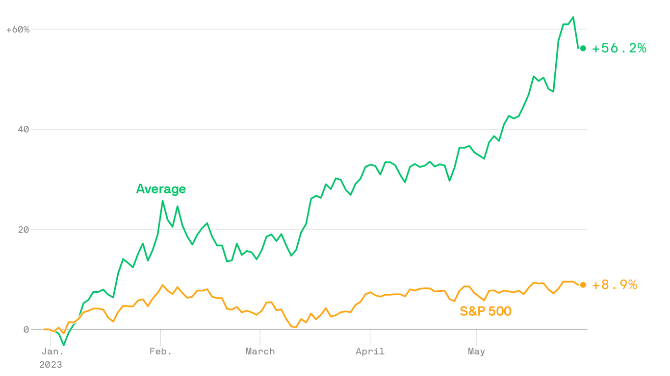 HomeMarkets Markets The S&P 500’s gains are almost entirely from just five companies By news June 1, 2023 0 313 FacebookTwitterPinterestWhatsApp A hypertrophied tech sector is carrying the stock market once again. The big picture: The S&P 500 is up up 8.9% so far in 2023, or 9.7% including …This post was originally published on this site Share FacebookTwitterPinterestWhatsApp Subscribe Login Notify of new follow-up comments new replies to my comments Please login to comment 0 Comments Inline Feedbacks View all comments Stay Connected149,490FansLike396,312FollowersFollow2,650SubscribersSubscribe Latest Articles Markets What Travelers Need to Know as Cartel Violence Rattles Mexico News The NYPD Arrested Epstein. Then the FBI Intervened. Market News Trump Secretary Silent as Sons Poised to Make Bank From End of Tariffs Markets AGI Round Table Special Report: The 2028 Global Intelligence Crisis Top Trades PhilStockWorld Top Trade Alert – Feb 23rd 2026 – Blue Owl Capital (OWL) Market News What’s Happened Since the Supreme Court’s Tariff Ruling Markets Monday Market Mayhem – Schrodinger’s Tariffs Cause Confusion Market News Mexico killed “El Mencho.” Here’s how and what we know about U.S. role Markets Ukraine Has Passed a Point of No Return Markets Ro Khanna Is Shaken by What He’s Learned From the Epstein Files Hot Items Putin’s shadow fleet could be wiped out in 2-3 months Markets What I Learned at PhilStockWorld.com Last Week – An AGI Round Table Review Charts PSW’s Weekly Webinar: Portfolio Review & FED Minutes (2/18/2026) AI Jared Sleeper on Which Software Companies Will Survive the SaaSpocalypse Load more