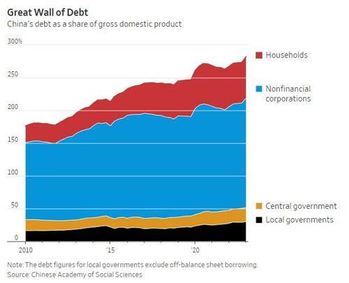 The issue isn’t the central government, whose debts are relatively low as a percentage of gross domestic product, but households, the private sector and local governments. Total debt as a share of GDP hit 295% in China last September, surpassing 257% in the U.S. and an average of 258% in the eurozone, BIS data show.