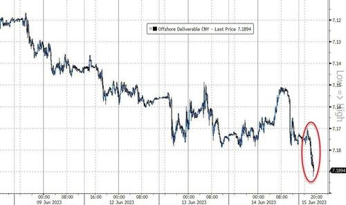 Critically, all of this puts more pressure on Beijing to unleash more stimulus (broader stimulus) and is sending the yuan lower…