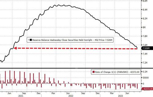 After last week’s modest growth in The Fed’s balance sheet, it plunged by $62.5BN last week (the most since early April and second most since July 2020)