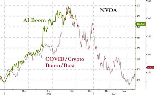 But it was still The Fed that was on everyone’s mind, and the market’s expectations for rate-cuts next year are quickly be reduced from over 6 rates cuts implied in July to around 3 cuts in 2024 now…