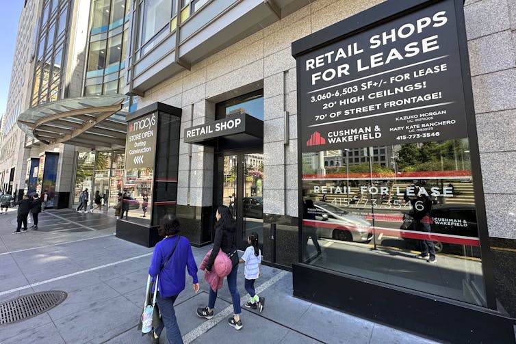 There are significant knock-on effects. A range of businesses, including restaurants, retail stores and services, rely on downtown office workers. At least 17% of all leisure and hospitality sector jobs are in the downtowns of the 100 largest U.S. cities.