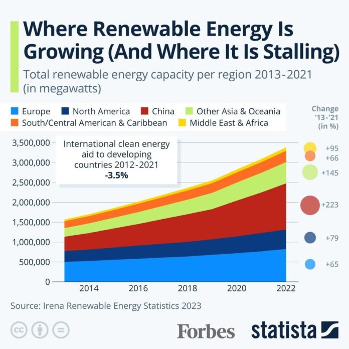Renewable energy capacity around the world more than doubled in the 10 years between 2013 and 2022, a newly released report from the International Renewable Energy Agency has found. However, progress has been quite lopsided, with large capacities having been built up in Europe and huge progress …