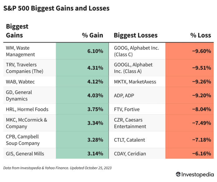 HomeMarkets Markets S&P 500 Gains and Losses Today: Tech Stocks Tumble After Alphabet’s Earnings Report By news October 25, 2023 0 311 FacebookTwitterPinterestWhatsApp U.S. equities sank, pulled down by the tech sector following the earnings report from Alphabet (GOOGL) and a spike in interest rates. The S&P 500 …This post was originally published on this site Share FacebookTwitterPinterestWhatsApp Subscribe Login Notify of new follow-up comments new replies to my comments Please login to comment 0 Comments Inline Feedbacks View all comments Stay Connected149,481FansLike396,312FollowersFollow2,650SubscribersSubscribe Latest Articles Markets ⚡ Powering the AI Boom: Data Centers and Ratepayer Protection Pledge (SCAM!!!) Markets PhilStockWorld Top Trade Alert – Feb 25th, 2026 – HP, Inc. (HPQ) Markets Whiplash Wednesday – Back in Black for the Week Markets How Jeffrey Epstein Ingratiated Himself With Top Microsoft Executives Biotech The Deaths Doctors Never Thought They’d See in the U.S. Markets The Truth You Can Buy: How Prediction Markets Became Democracy’s Newest Threat Markets State of the Market Tuesday – 6 Fed Speakers, HD, HPQ and Trump as We Wait for CRM and NVDA Markets What Travelers Need to Know as Cartel Violence Rattles Mexico News The NYPD Arrested Epstein. Then the FBI Intervened. Market News Trump Secretary Silent as Sons Poised to Make Bank From End of Tariffs Markets AGI Round Table Special Report: The 2028 Global Intelligence Crisis Top Trades PhilStockWorld Top Trade Alert – Feb 23rd 2026 – Blue Owl Capital (OWL) Market News What’s Happened Since the Supreme Court’s Tariff Ruling Markets Monday Market Mayhem – Schrodinger’s Tariffs Cause Confusion Load more