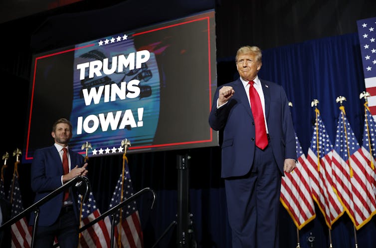 Trounced, crushed, routed, dominated: Pick your verb to describe what former President Donald Trump did to his GOP rivals in the Jan. 15, 2024 Iowa caucus. The Conversation U.S. asked two scholars to analyze the results, in which Florida Gov. Ron DeSantis came in second, with former U.N. Ambassador Nikki Haley a close third.