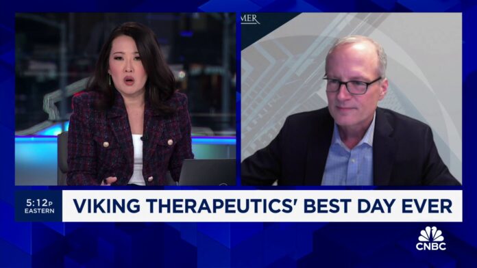 HomeMarkets Markets Viking’s obesity drug study results are ‘almost flawless’, says Oppenheimer’s Jay Olson By news February 27, 2024 0 114 FacebookTwitterPinterestWhatsApp Jay Olson, Oppenheimer biotech analyst, joins ‘Fast Money’ to talk Viking’s best trading day ever and the results of its obesity drug study.This post was originally published on this site Share FacebookTwitterPinterestWhatsApp Subscribe Login Notify of new follow-up comments new replies to my comments Please login to comment 0 Comments Inline Feedbacks View all comments Stay Connected149,466FansLike396,312FollowersFollow2,650SubscribersSubscribe Latest Articles Markets Claude dethrones ChatGPT as top U.S. app after Pentagon saga Markets The Death of Khamenei and the End of an Era Markets Trump Says Iran’s Supreme Leader Is Dead Market News US‑Israeli attack on Iran risks plunging the world into turmoil (and my take) Markets Iran strikes were launched without approval from Congress, deeply dividing lawmakers Markets ☢️ World War Trump: The Pentagon Ultimatum – AI Weaponization and Constitutional Collapse Hot Items Zeihan: Attack on Iran Underway AI Anthropic CEO responds to Trump order, Pentagon clash Charts PSW’s Weekly Webinar: The State of the Markets Report (2/25/2026) AI Trump Orders Government to Stop Using Anthropic After Pentagon Standoff Markets Fall Back Friday – February Ending on a Week Note? AI AI “hot takes” are becoming a market risk Hot Items How Trump’s renewed tariff chaos will stifle investment around the world Market News Netflix Backs Out of Bid for Warner Bros., Paving Way for an Ellison Takeover Load more
