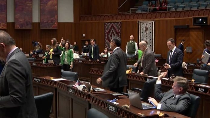 HomeMarkets Markets Watch chaos on AZ House floor when lawmakers attempt to repeal Civil War-era abortion ban By news April 11, 2024 0 120 FacebookTwitterPinterestWhatsApp A Civil war-era abortion ban will remain in Arizona after lawmakers were unable to raise a motion to repeal it in the Arizona House.This post was originally published on this site Share FacebookTwitterPinterestWhatsApp Subscribe Login Notify of new follow-up comments new replies to my comments Please login to comment 0 Comments Inline Feedbacks View all comments Stay Connected149,452FansLike396,312FollowersFollow2,650SubscribersSubscribe Latest Articles Energy What is the Strait of Hormuz, and why does its closure matter so much to the global economy? Hot Items A Plan B for space? On the risks of concentrating national space power in private hands Energy Iran’s targeting of airport, ports and hotels in reaction to US strikes has forced Gulf nations onto front lines of a war – Hot Items Donald Trump has made some bold claims on the US economy. But how do they stack up against the data? Energy ‘Destruction is not the same as political success’: US bombing of Iran shows little evidence of endgame strategy Markets Toppling Tuesday – Regimes and Markets Edition Biotech RFK Jr. Lied His Way Into Office and American Health Is the Victim Markets Putin Is the Iran War’s One Sure Winner Markets Trump Makes Surreal Turn From Talking War to Mocking Melania AI The SaaSpocalypse Has Arrived…Or Has It? Markets Trump’s lethal presidency Markets Monday Market Mayhem – World War Trump and Portfolio Hedges Market News Deeply conflicted, Kushner represents the U.S. in high-stakes negotiations with Iran Markets Claude dethrones ChatGPT as top U.S. app after Pentagon saga Load more
