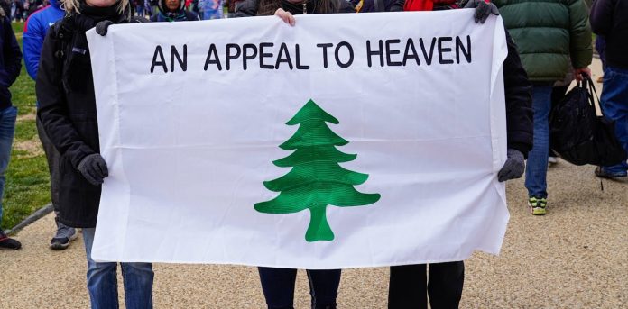 But, that is not its most common current use. Beginning in 2013, the Appeal to Heaven flag took on Christian nationalist overtones. Christian nationalism refers to a set of ideological beliefs that champion the U.S. as a wholly Christian nation ordained by God.