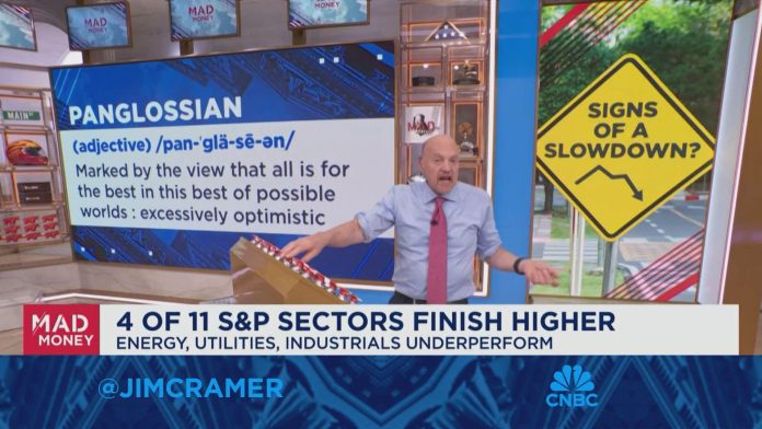 HomeMarkets Markets You can’t have a weak economy where lots of companies make a fortune, says Jim Cramer By news June 3, 2024 0 245 FacebookTwitterPinterestWhatsApp ‘Mad Money’ host Jim Cramer talks the current market and if signs of a slowdown will weigh on stocks.This post was originally published on this site Share FacebookTwitterPinterestWhatsApp Subscribe Login Notify of new follow-up comments new replies to my comments Please login to comment 0 Comments Inline Feedbacks View all comments Stay Connected149,466FansLike396,312FollowersFollow2,650SubscribersSubscribe Latest Articles Markets Claude dethrones ChatGPT as top U.S. app after Pentagon saga Markets The Death of Khamenei and the End of an Era Markets Trump Says Iran’s Supreme Leader Is Dead Market News US‑Israeli attack on Iran risks plunging the world into turmoil (and my take) Markets Iran strikes were launched without approval from Congress, deeply dividing lawmakers Markets ☢️ World War Trump: The Pentagon Ultimatum – AI Weaponization and Constitutional Collapse Hot Items Zeihan: Attack on Iran Underway AI Anthropic CEO responds to Trump order, Pentagon clash Charts PSW’s Weekly Webinar: The State of the Markets Report (2/25/2026) AI Trump Orders Government to Stop Using Anthropic After Pentagon Standoff Markets Fall Back Friday – February Ending on a Week Note? AI AI “hot takes” are becoming a market risk Hot Items How Trump’s renewed tariff chaos will stifle investment around the world Market News Netflix Backs Out of Bid for Warner Bros., Paving Way for an Ellison Takeover Load more