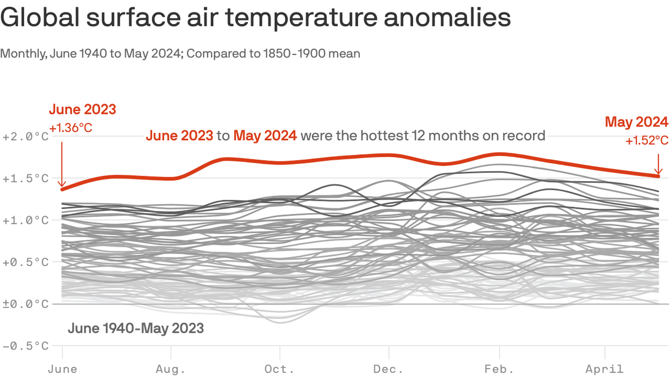 HomeMarkets Markets Global heat record broken for 12th straight month in May By news June 5, 2024 0 149 FacebookTwitterPinterestWhatsApp May was the 12th consecutive month to set a monthly global average temperature record, and exceed a key Paris Agreement temperature target. Why it …This post was originally published on this site Share FacebookTwitterPinterestWhatsApp Subscribe Login Notify of new follow-up comments new replies to my comments Please login to comment 0 Comments Inline Feedbacks View all comments Stay Connected149,525FansLike396,312FollowersFollow2,650SubscribersSubscribe Latest Articles Markets Retirement Income Strategies 101 Markets The Global World Order Is Collapsing- And It’s Much Bigger Than Trump! Markets David Ellison Is Playing a Dangerous Game Markets Interesting Market Activity Noted Markets Trump’s EPA decides climate change doesn’t endanger public health – the evidence says otherwise Markets CPI Friday – Fear Drives the Market – Should We Buy This Dip? Climate Trump just killed the EPA’s ability to fight climate change. It may backfire. AI Swarms of AI bots can sway people’s beliefs – threatening democracy Biotech FDA rejects Moderna’s mRNA flu vaccine application – for reasons with no basis in the law AI Paul Krugman: No, AI Doesn’t Justify Lower Interest Rates Markets Fact Check Thursday – What is Really Going on in the Economy? AI What dating apps are really optimizing. Hint: it isn’t love Biotech Why is US health care still the most expensive in the world after decades of cost-cutting initiatives? Market News Federal Debt to Hit Record Levels, Budget Office Warns Load more