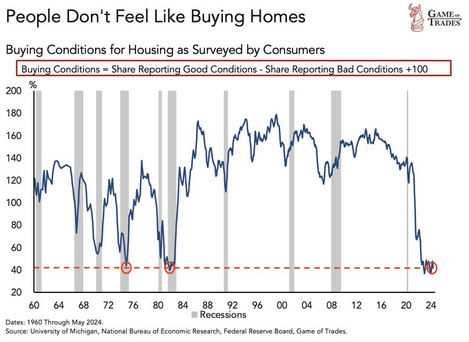 HomeMarkets Markets U.S. housing buying conditions collapse after 4 decades; Is recession next? By news July 5, 2024 0 66 FacebookTwitterPinterestWhatsApp The United States housing market continues to show potential signs of an impending economic downturn amidst growing uncertainty.Recent indicators …This post was originally published on this site Share FacebookTwitterPinterestWhatsApp Subscribe Login Notify of new follow-up comments new replies to my comments Please login to comment 0 Comments Inline Feedbacks View all comments Stay Connected149,497FansLike396,312FollowersFollow2,650SubscribersSubscribe Latest Articles Markets Mexico killed “El Mencho.” Here’s how and what we know about U.S. role Markets Ukraine Has Passed a Point of No Return Markets Ro Khanna Is Shaken by What He’s Learned From the Epstein Files Markets Putin’s shadow fleet could be wiped out in 2-3 months Markets What I Learned at PhilStockWorld.com Last Week – An AGI Round Table Review Charts PSW’s Weekly Webinar: Portfolio Review & FED Minutes (2/18/2026) AI Jared Sleeper on Which Software Companies Will Survive the SaaSpocalypse Market News Get Ready for Zombie Tariffs Hot Items The Supreme Court Just Ruled Trump’s Tariffs Unconstitutional Market News Supreme Court Blocks Tariffs Hours After Trump Bragged They Wouldn’t Markets TGIF Friday – Short Week Not Short Enough in the Fog of War AI The Worst-Case Future for White-Collar Workers Market News Russia tested NATO’s airspace 18 times in 2025 alone – a 200% surge that signals a dangerous shift AI DHS Opens a Billion-Dollar Tab With Palantir Load more