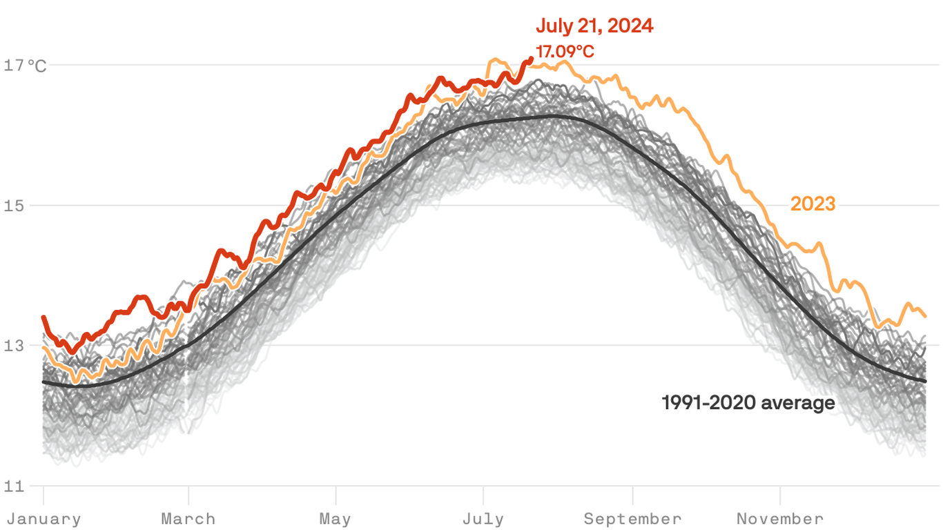HomeMarkets Markets Earth likely just had its hottest day in thousands of years By news July 23, 2024 0 137 FacebookTwitterPinterestWhatsApp On Sunday, Earth saw its warmest day on record globally since at least 1940, according to the Copernicus Climate Change Service in Europe. Threat …This post was originally published on this site Share FacebookTwitterPinterestWhatsApp Subscribe Login Notify of new follow-up comments new replies to my comments Please login to comment 0 Comments Inline Feedbacks View all comments Stay Connected149,499FansLike396,312FollowersFollow2,650SubscribersSubscribe Latest Articles Top Trades PhilStockWorld Top Trade Alert – Feb 23rd 2026 – Blue Owl Capital (OWL) Markets What’s Happened Since the Supreme Court’s Tariff Ruling Markets Monday Market Mayhem – Schrodinger’s Tariffs Cause Confusion Markets Mexico killed “El Mencho.” Here’s how and what we know about U.S. role Markets Ukraine Has Passed a Point of No Return Markets Ro Khanna Is Shaken by What He’s Learned From the Epstein Files Hot Items Putin’s shadow fleet could be wiped out in 2-3 months Markets What I Learned at PhilStockWorld.com Last Week – An AGI Round Table Review Charts PSW’s Weekly Webinar: Portfolio Review & FED Minutes (2/18/2026) AI Jared Sleeper on Which Software Companies Will Survive the SaaSpocalypse Market News Get Ready for Zombie Tariffs Hot Items The Supreme Court Just Ruled Trump’s Tariffs Unconstitutional Market News Supreme Court Blocks Tariffs Hours After Trump Bragged They Wouldn’t Markets TGIF Friday – Short Week Not Short Enough in the Fog of War Load more