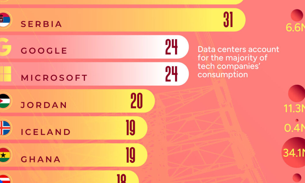 HomeMarkets Markets Charted: Big Tech Uses More Electricity Than Entire Countries By news August 12, 2024 0 64 FacebookTwitterPinterestWhatsApp Big Tech’s AI dreams are coming with a big energy price tag—technology companies and their data centers are consuming more electricity than countries …This post was originally published on this site Share FacebookTwitterPinterestWhatsApp Subscribe Login Notify of new follow-up comments new replies to my comments Please login to comment 0 Comments Inline Feedbacks View all comments Stay Connected149,411FansLike396,312FollowersFollow2,650SubscribersSubscribe Latest Articles Markets MAHAspital Markets Monday Market Mayhem – The March to World War III Continues Markets To Address Farm Labor Shortage, Trump Administration Turns to Migrant Workers Market News Wall Street Bankers Offered Lucrative Access to Join the Pentagon Market News Jared Kushner Solicits Funds for His Firm While Working as Mideast Envoy Biotech Florida Is Trying to Ignore Measles Until It Can’t Market News Phillips O’Brien on Iran Markets World War III – Week 3 Begins – An AGI Round Table Perspective Charts Wartime Investing (3/11/2026) Market News The Latest Economic Numbers Are Brutal for Trump Energy Not just Patriot interceptors: A defense expert explains the various weapons US and allies use to defend against missiles and drones Energy Ian Bremmer: Thoughts on Trump’s war with Iran Markets Iran’s ruling structure explained Markets Friday the 13th (again) – Week 3 of World War III Begins Load more